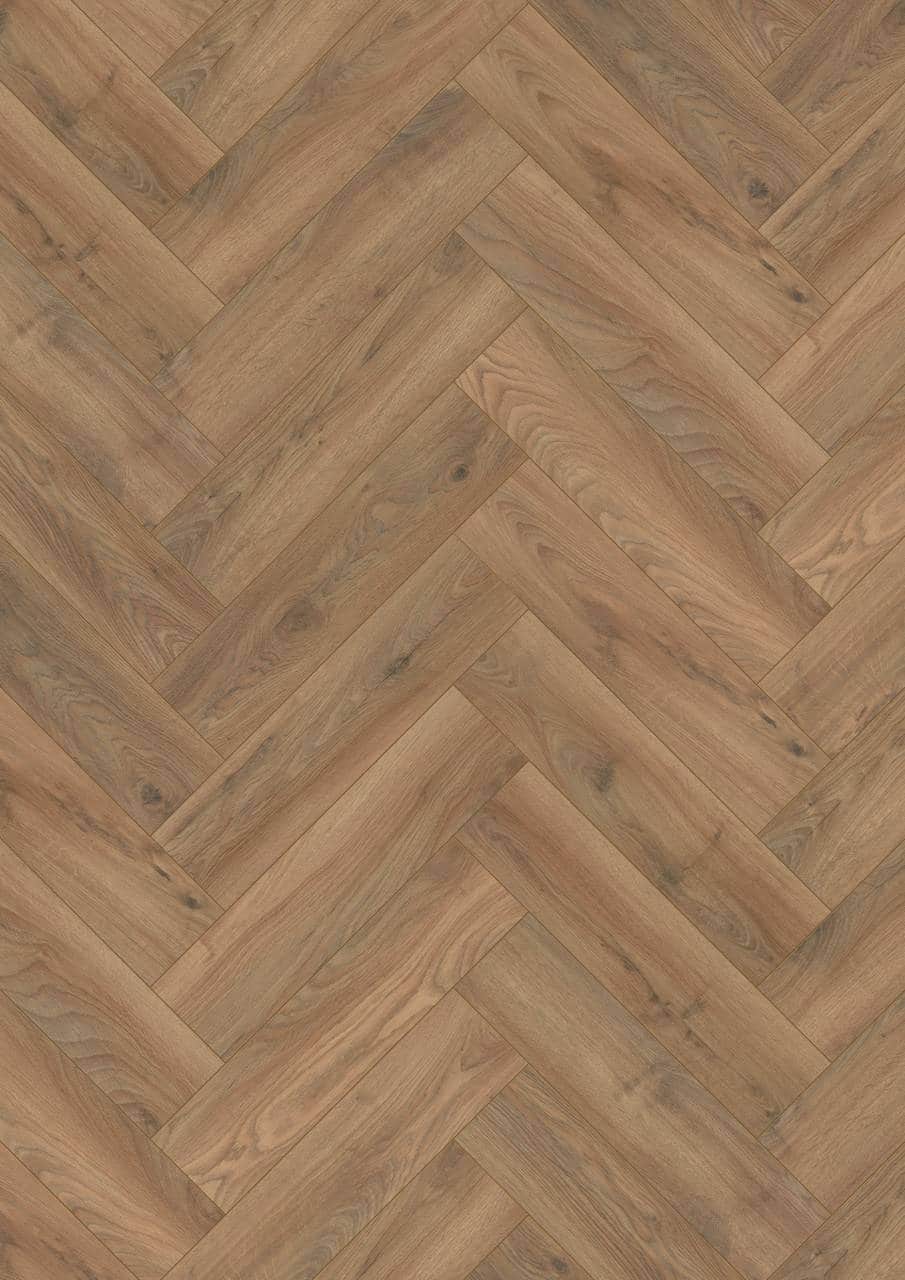 5947 Historic Oak introducerer det klassiske sildebensdesign, hvor hver planke fremhæves af en dybt præget struktur, som følger træets naturlige årer. Resultatet er et gulv med et realistisk og elegant udtryk, der giver rummet karakter og varme. De dybe, rige toner og det synkroniserede mønster skaber en autentisk oplevelse, som fanger både øjet og følelsen af ægte træ.