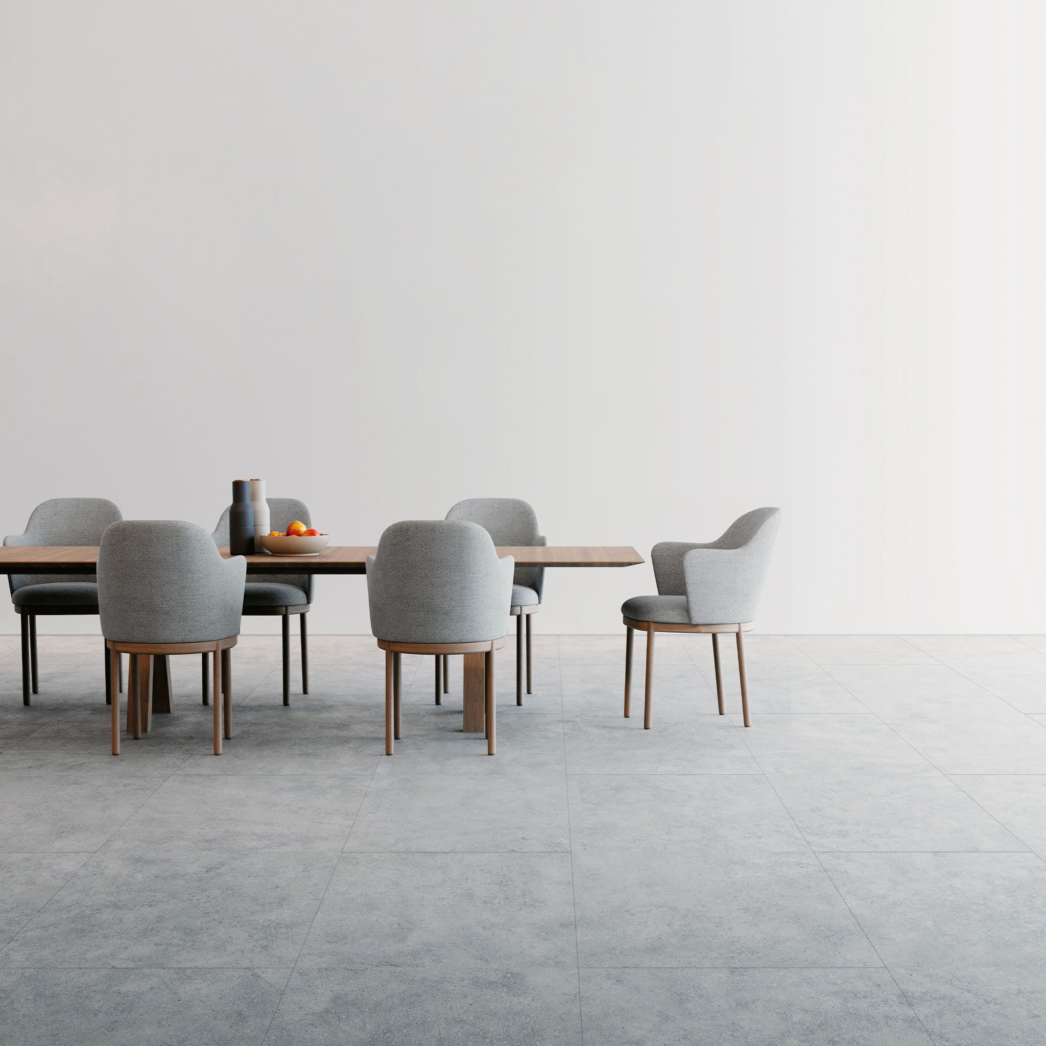 ELVIK Etercnoc er et laminatgulv i stort format med betonlook, designet til at skabe et industrielt og moderne udtryk i både private og erhvervsmiljøer. Den grå nuance giver et neutralt baggrundsgrundlag, der fremhæver rummets øvrige elementer, samtidig med at gulvet fremstår autentisk og realistisk.