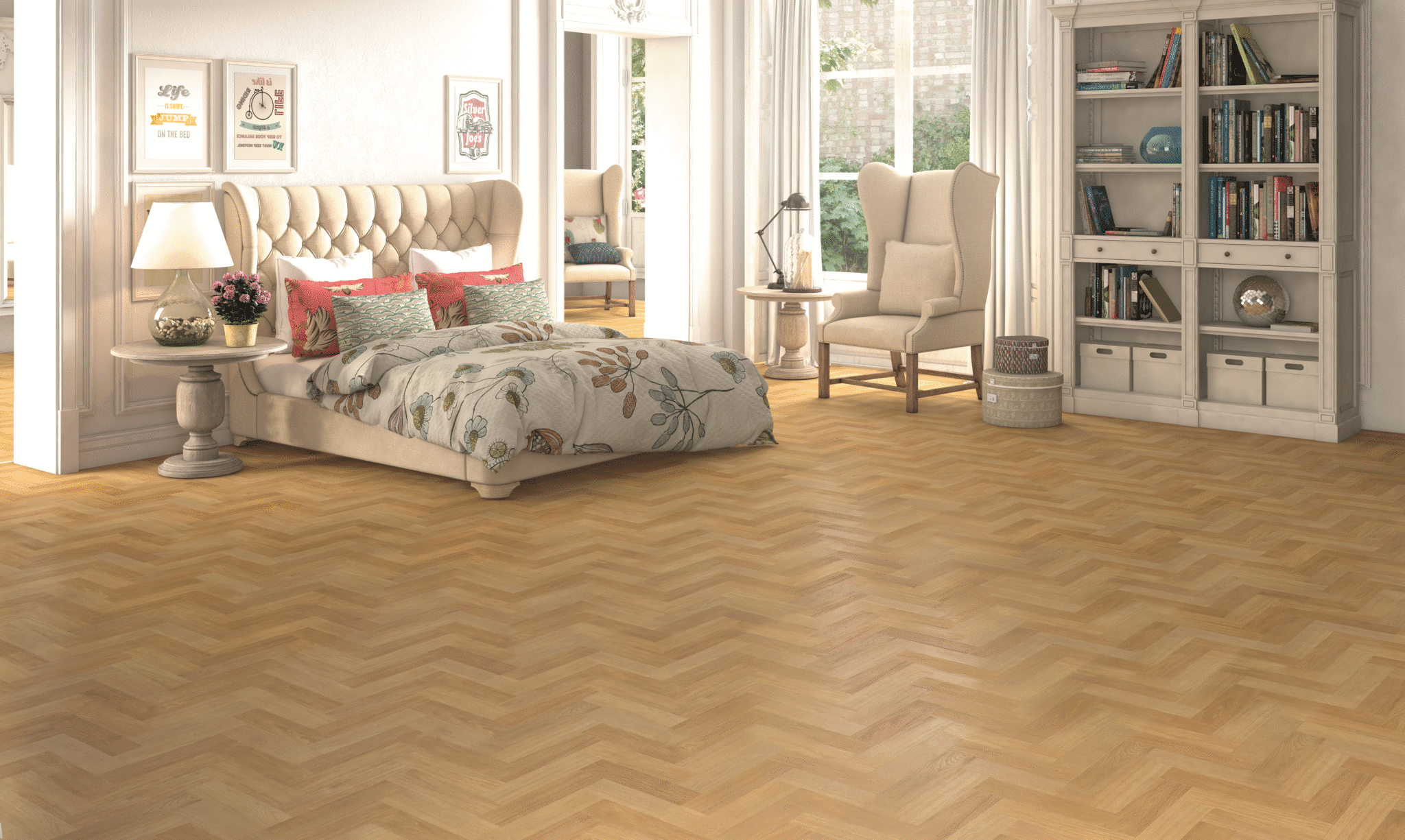 Natural Herringbone kombinerer autentisk trælook, hyper-realistisk finish og klassisk sildebenmønster. AC6 slidstyrke, klasse 33 og velegnet til både køkken, bad og gulvvarme. Nemt at lægge.