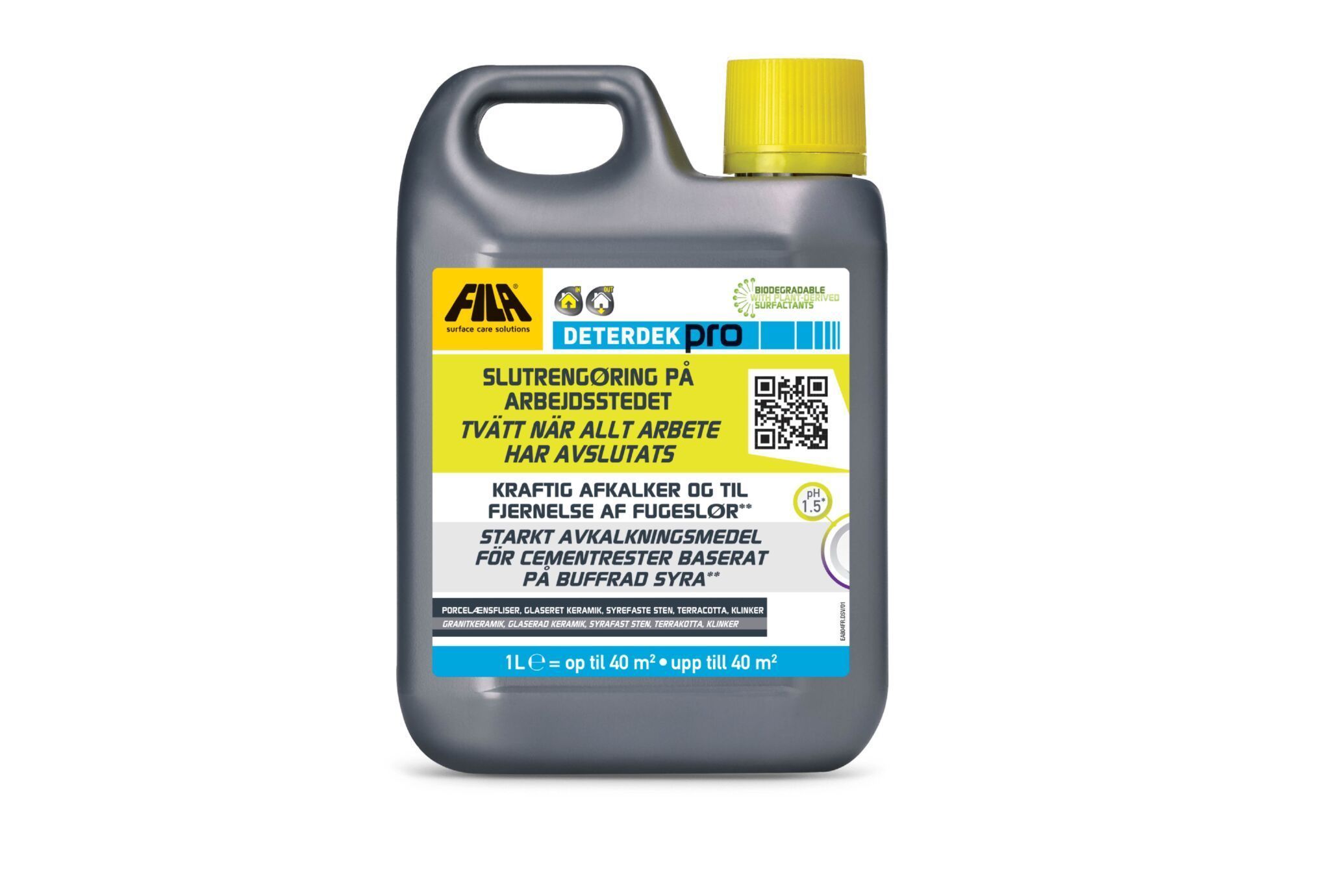 Forside / Alle produkter / Tilbehør / Imprægnering & Rens / Fila, Deterdek Pro, Slutrengøring på arbejdsstedet, 1 Liter