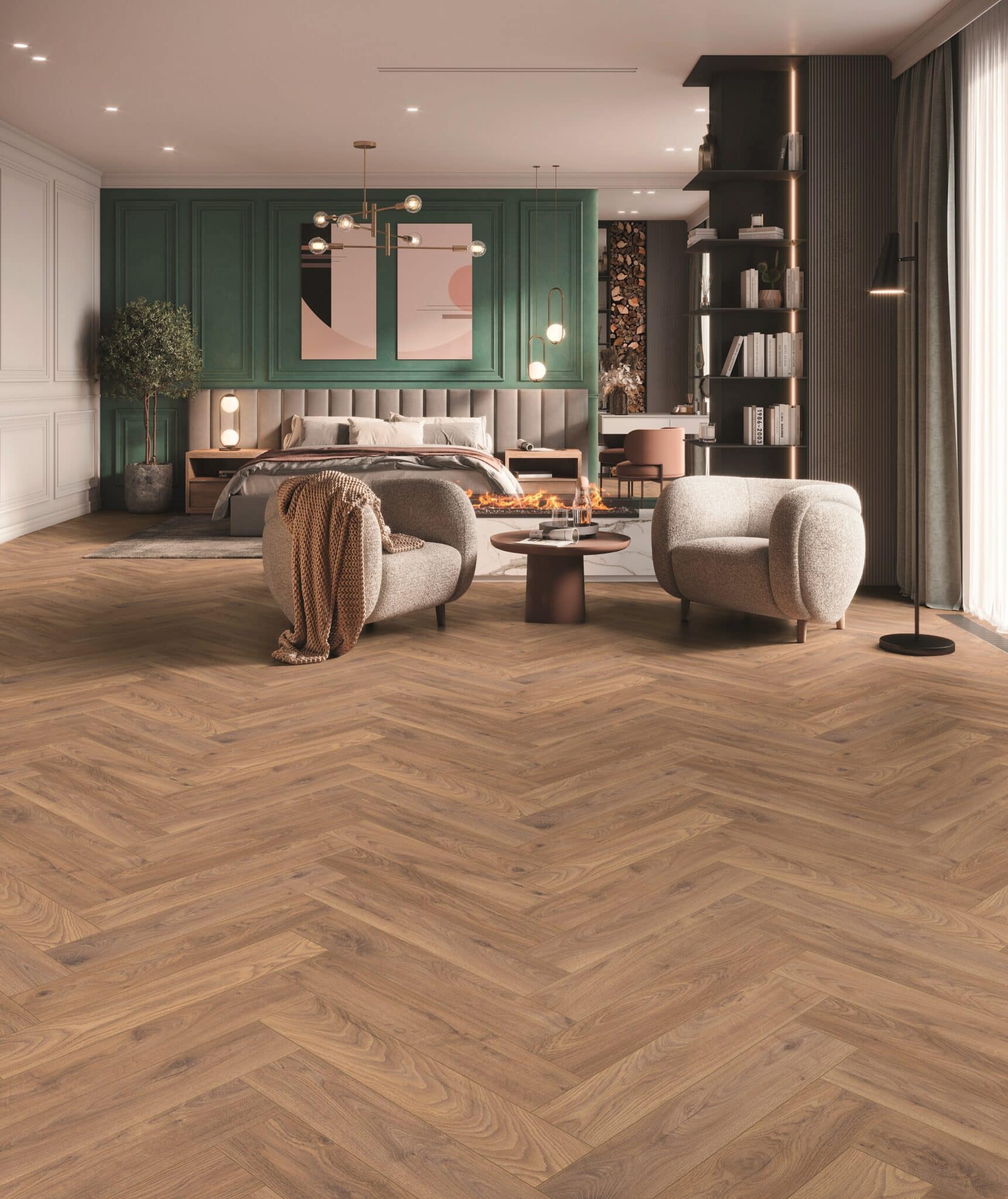 Med sit klassiske sildebensmønster og levende egetræslook forener Firebrand Oak traditionelt håndværk med moderne laminatteknologi. De varme, rustikke nuancer og den detaljerede struktur skaber et naturligt og eksklusivt udtryk, der passer perfekt til både moderne og klassiske indretninger.