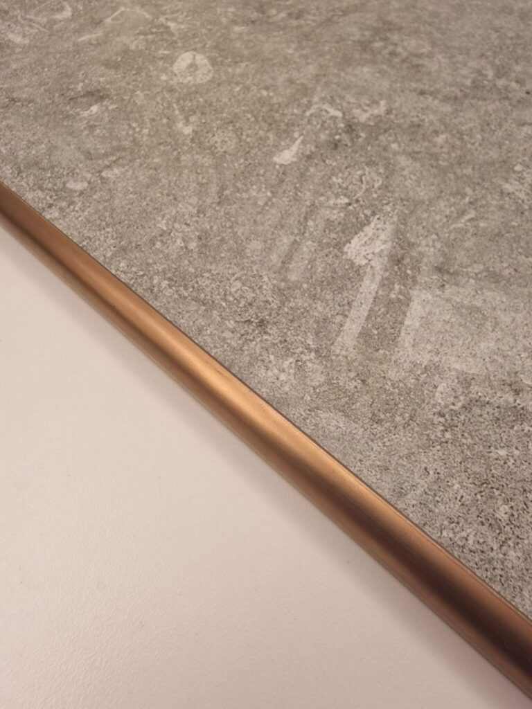 Du kan vælge mellem flere eksklusive overflader som blank krom, kobber, sort oxideret, guld og satin, hvilket gør det nemt at matche profilen med armaturer, greb og øvrige detaljer i rummet.