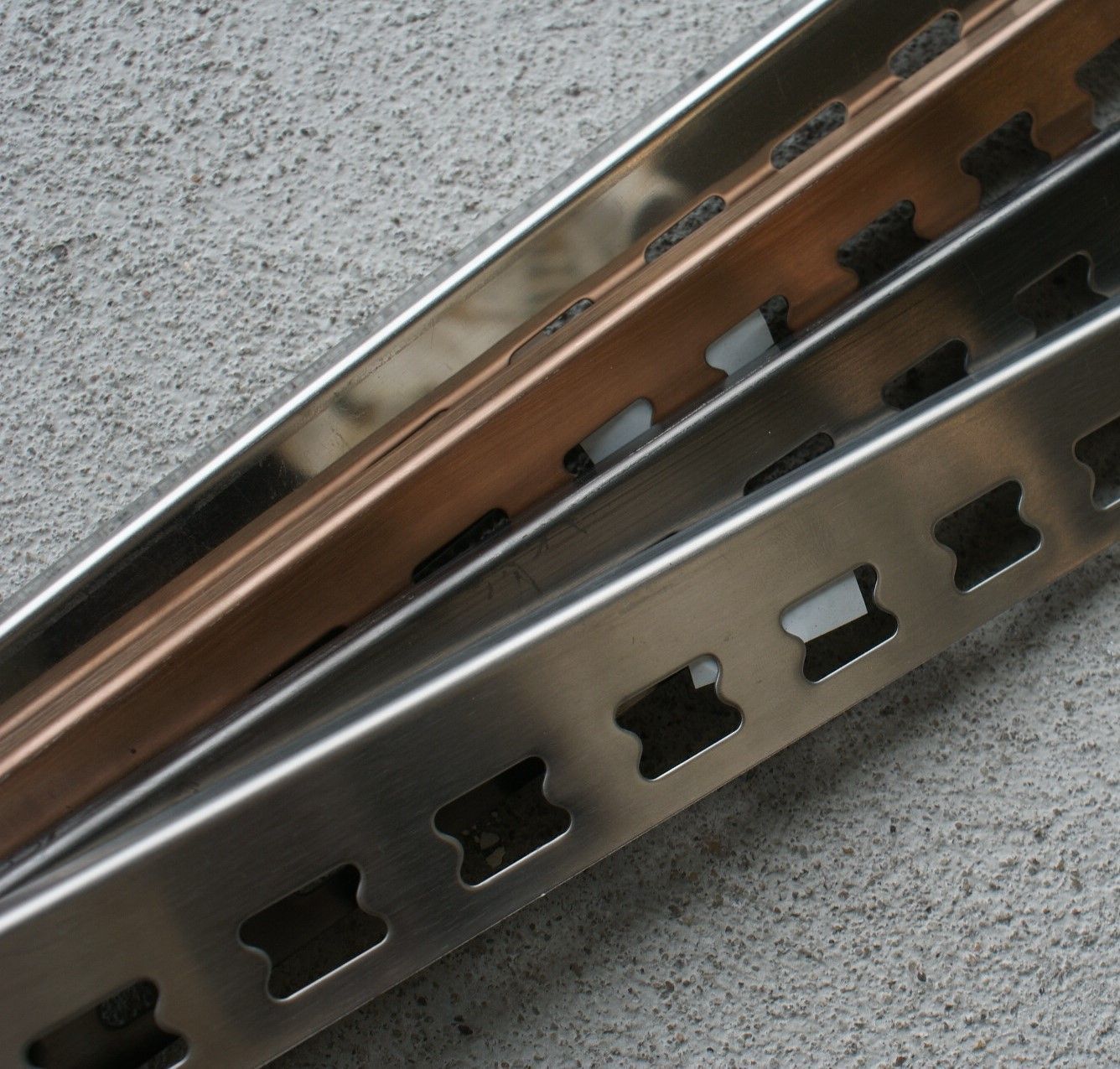 Den fås i flere farver som blank krom, kobber, sort oxideret, guld og satin, hvilket gør det muligt at tilpasse profilen til både lyse og mørke fliser samt øvrige detaljer i rummet.