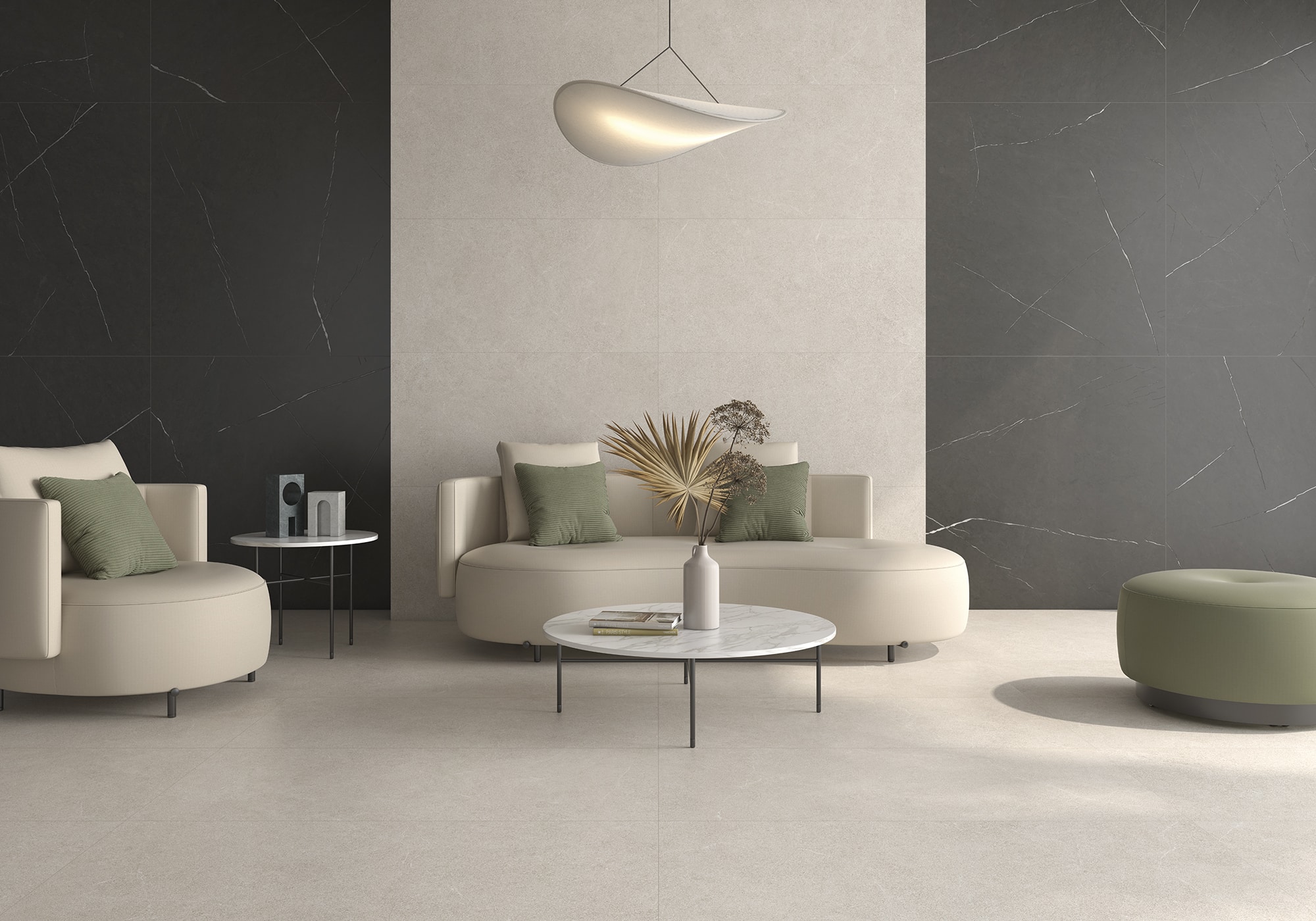 MATERIA – keramiske fliser i stenlook – Blanco & Arena