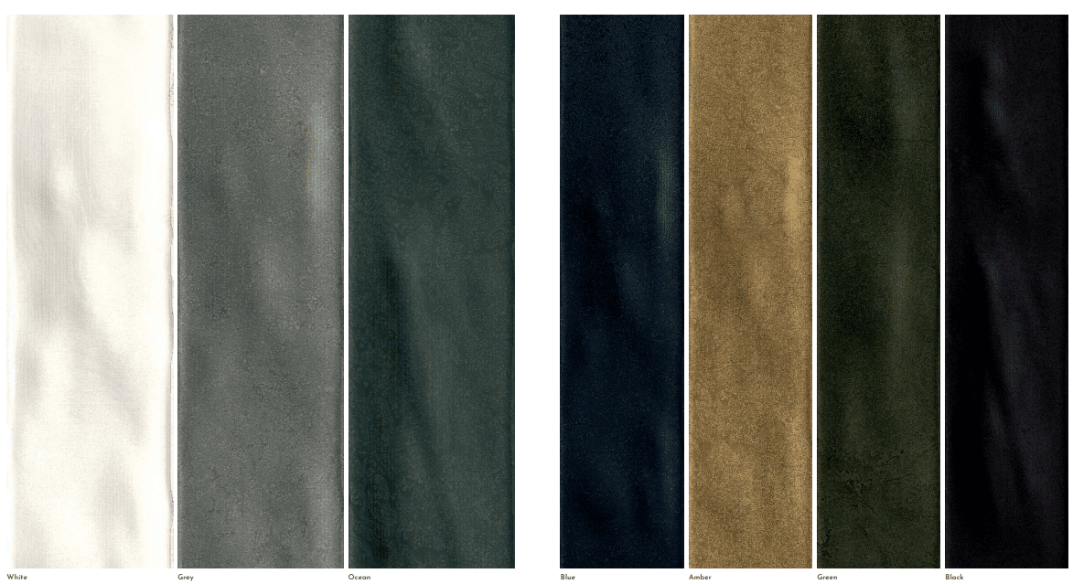 Fliserne fås i 7 smukke farver, der spænder fra lyse og neutrale toner til dybere, mere karakterfulde nuancer. Den blanke overflade fremhæver farverne og reflekterer lyset, hvilket giver rummet et levende og elegant udtryk. Samtidig sikrer den strukturerede finish et håndlavet look, som tilfører varme og autenticitet til køkken, badeværelse eller andre indendørs vægge.