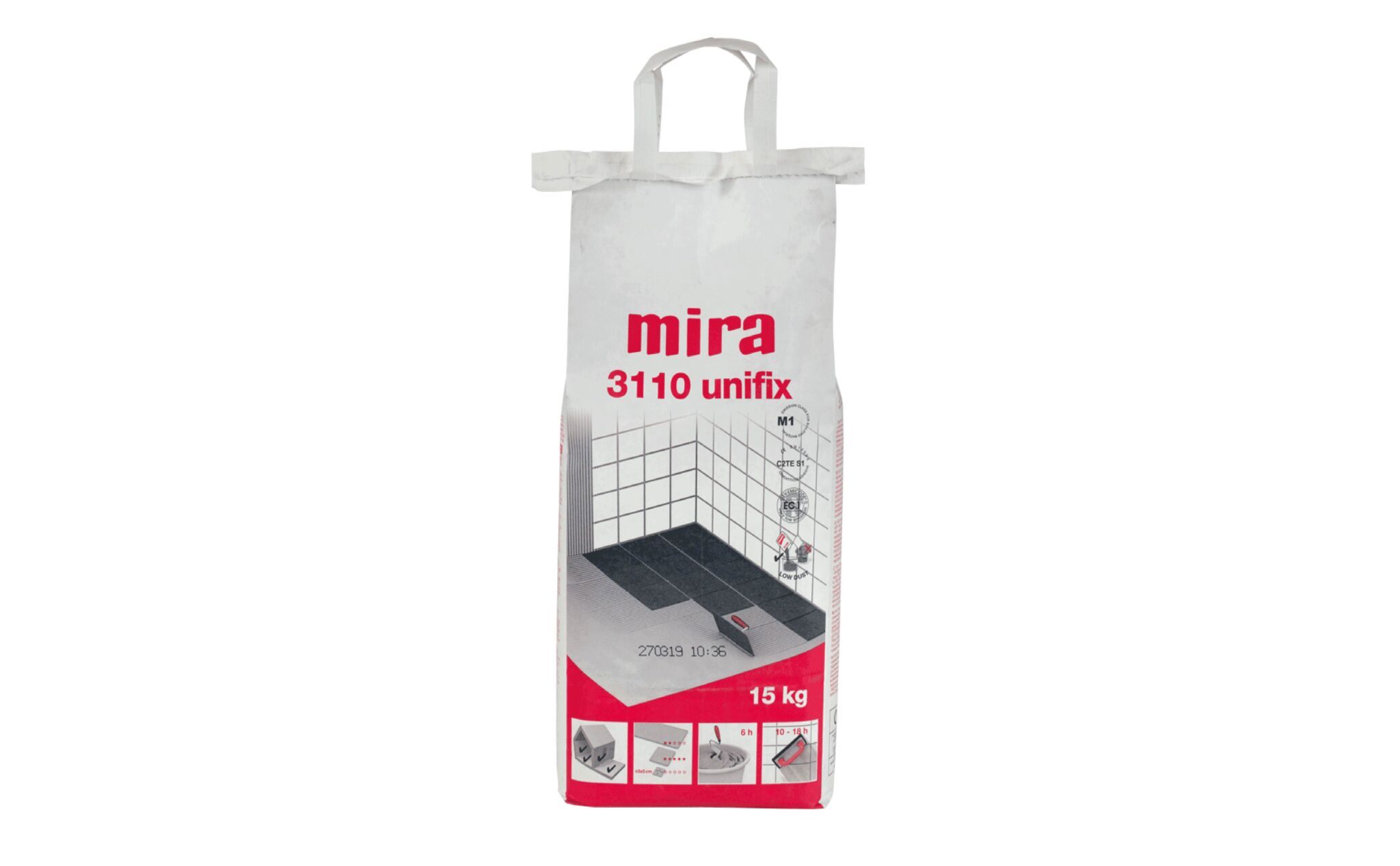Forside / Alle produkter / Tilbehør / Flisefuge & Klæb / Mira, 3110 unifix, 15kg