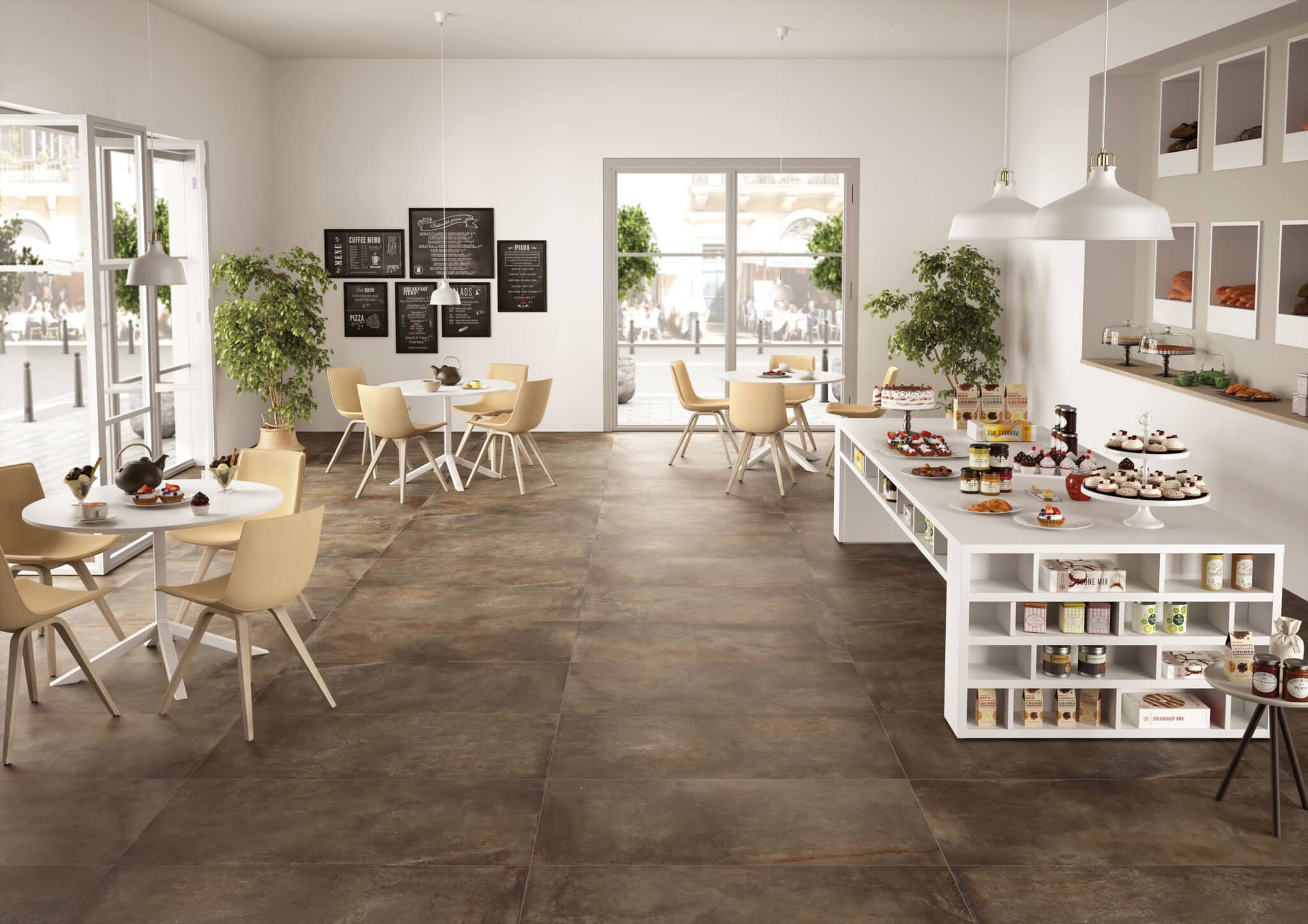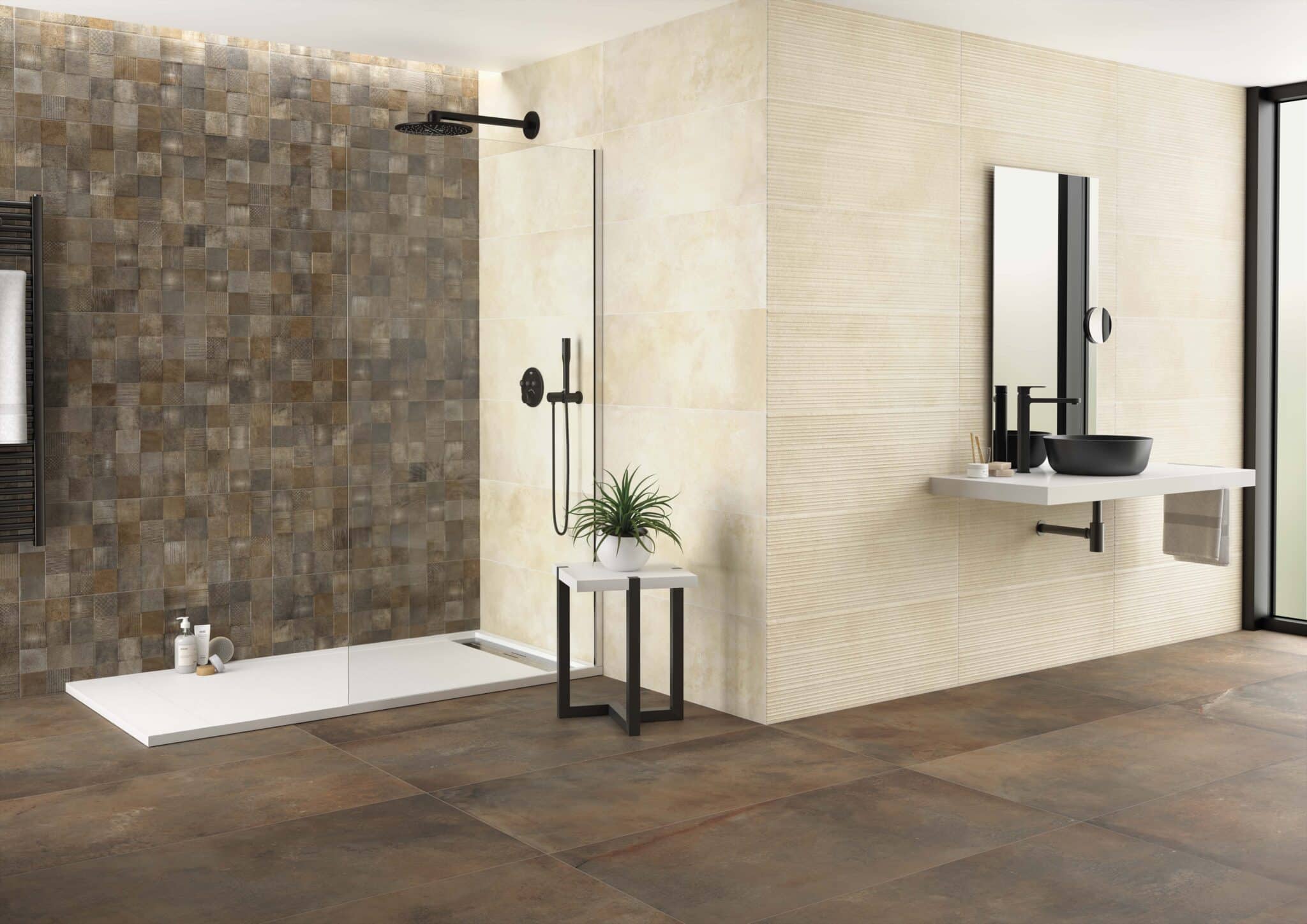 Serien fås i fem moderne farver: Beige, Iron, Oxido, Silver og White, og i to praktiske formater: 60×60 og 60×120 cm. Tykkelsen på 10 mm sikrer robusthed og nem installation.