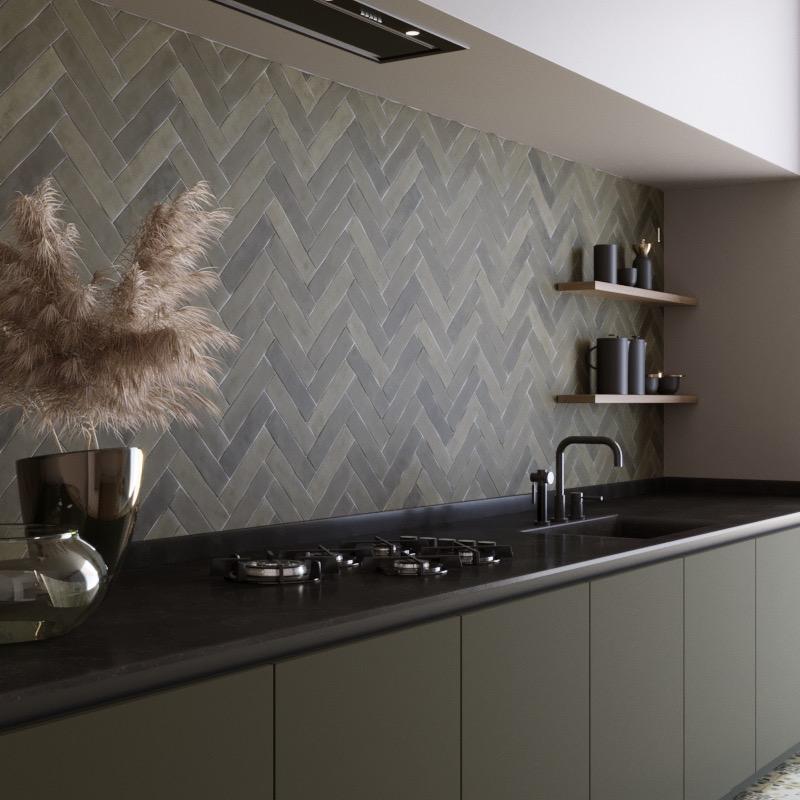 Fliserne måler 25×6,2 cm og kan kombineres kreativt i forskellige mønstre. Den matte overflade gør dem ideelle til køkken, badeværelse og dekorative vægpartier, hvor du ønsker et moderne, elegant udtryk uden refleksioner.